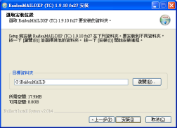 選擇您想安裝的目錄路徑就可以點[安裝]. 安裝完後, 就準備進行第一次啟動. 以下設定以 raidenmaild.com 做為範例中要設定的網域.